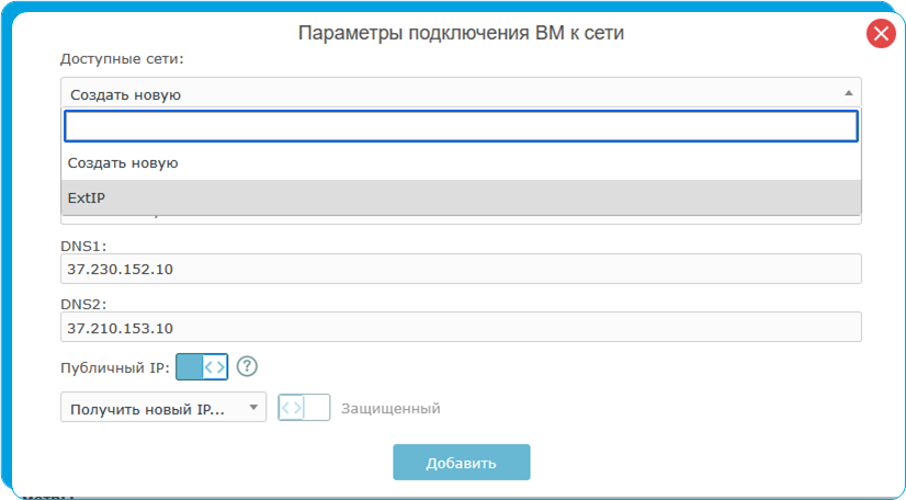 1.2.1.6. Как подключить ВМ при создании к ExtIP