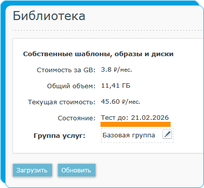 5. В строке "Состояние" отобразится дата окончания тестового периода.