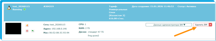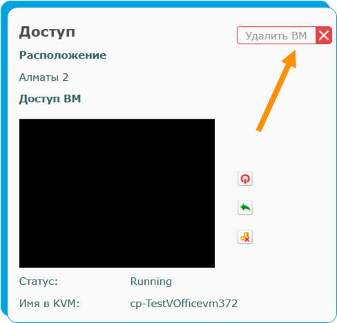 1. В списке ВМ напротив каждой ВМ справа нажмите кнопку "Удалить ВМ".