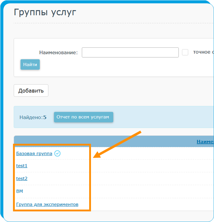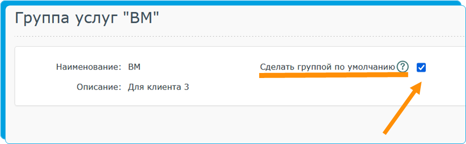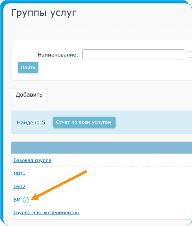 Так же в списке всех групп услуг на против группы устаноовленной по умолчанию, появится галочка.