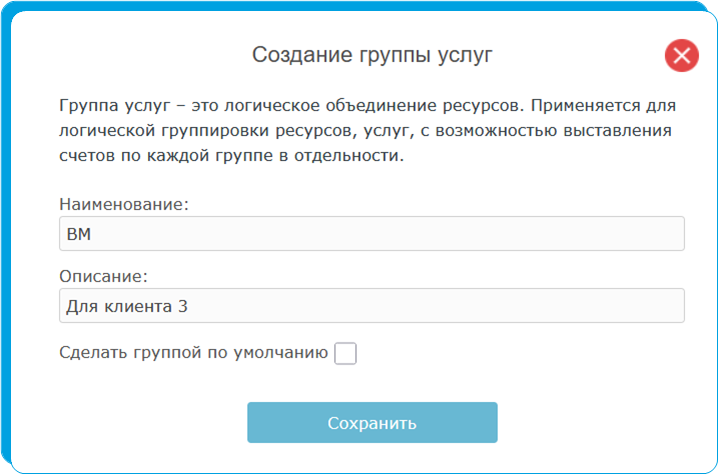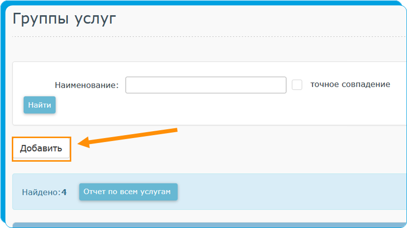 1. Создание группы услуг 1. Для создания группы, перейдите в левом меню в раздел группы услуг. 2. Нажмите кнопку "Добавить". 3. В появившемся окне создайте новую группу и нажмите кнопку "Сохранить".