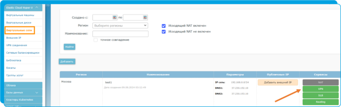 1. создать или выбрать виртуальную сеть (раздел "Elastic Cloud Hyper-V" - "Виртуальные сети"),